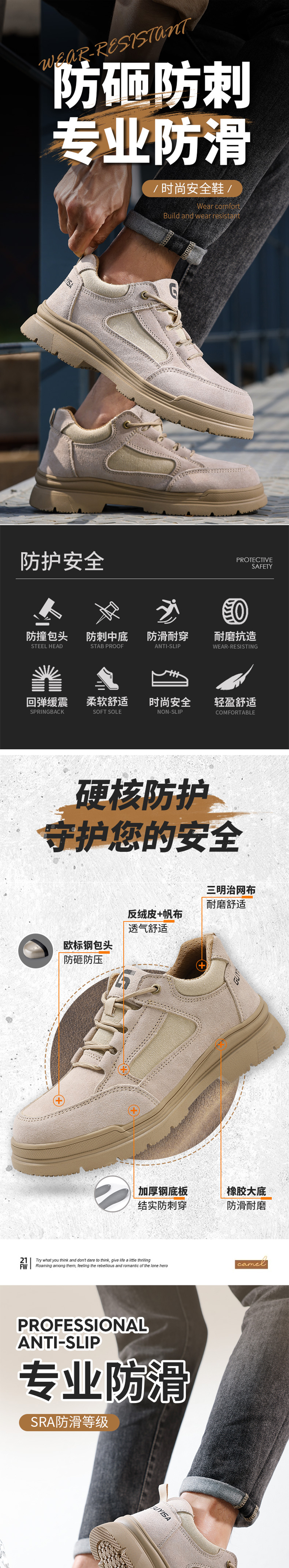 安科 PVC安全警示标识标牌 已接地 有人工作 200*160mm 挂钩款