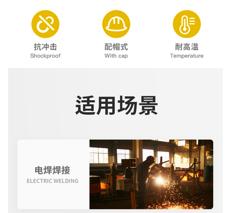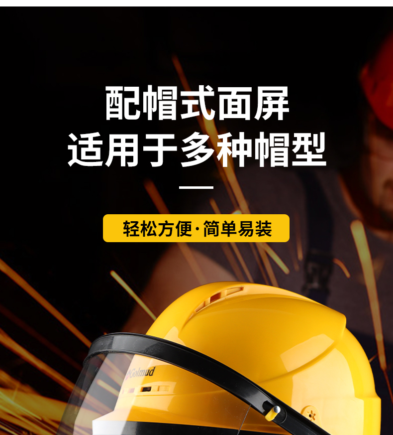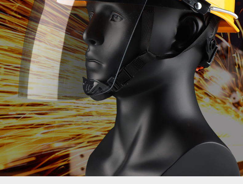 黄色安全帽+透明面屏。