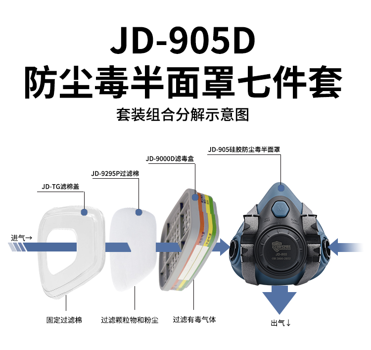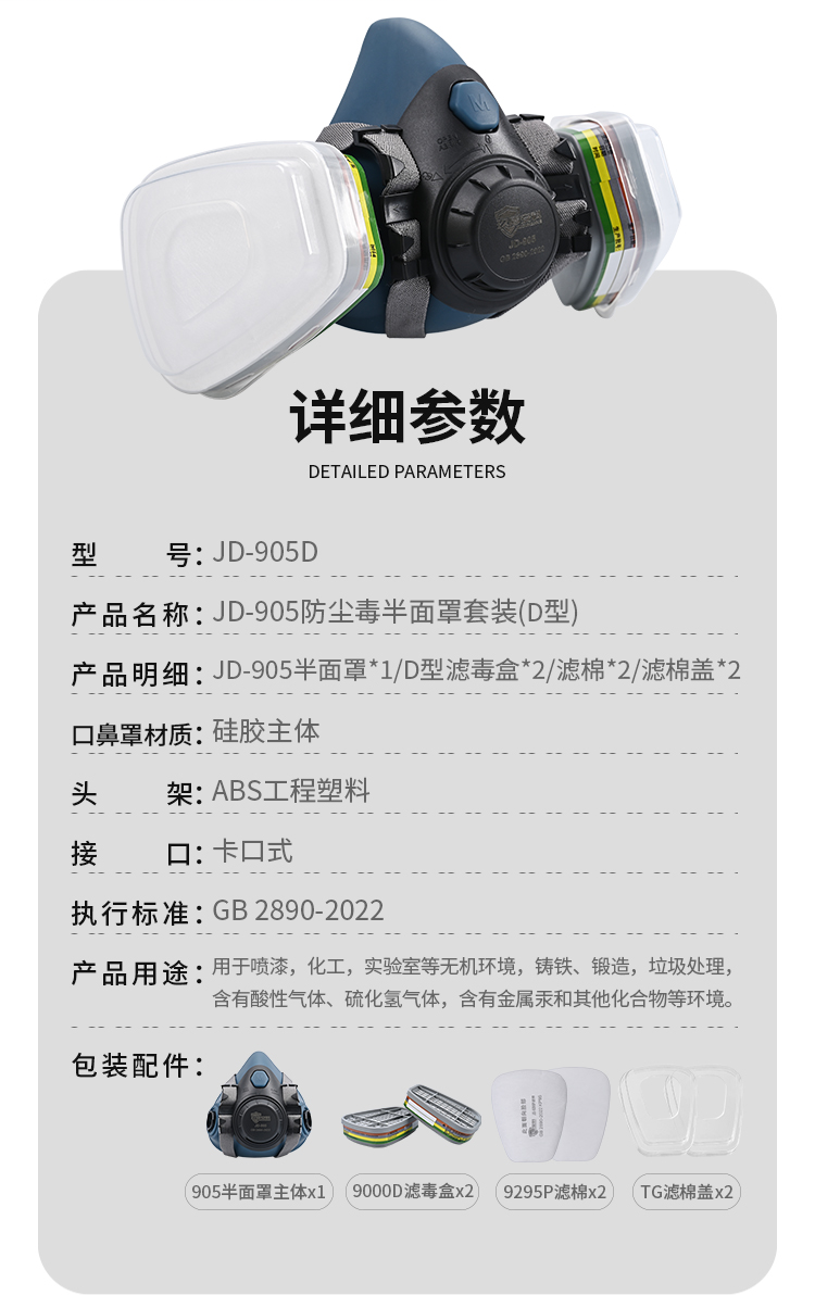与JD-TG滤棉盖和JD-9295P滤棉一同使用用于尘毒防护。