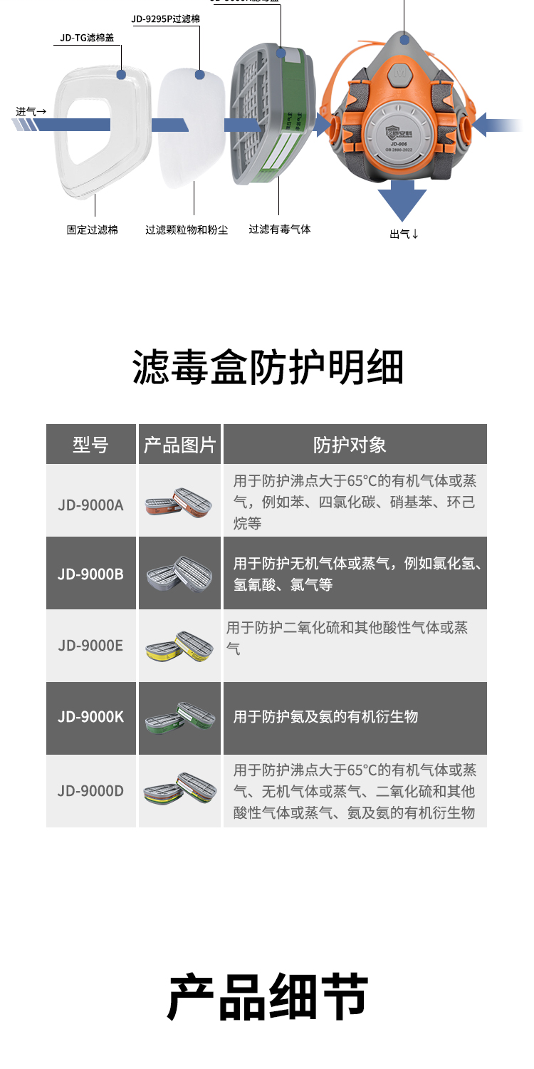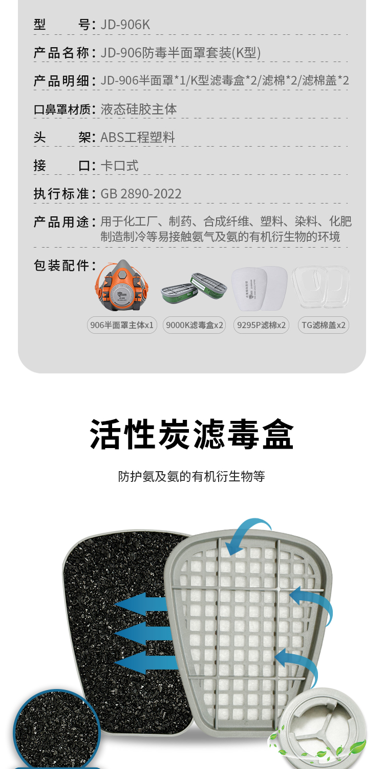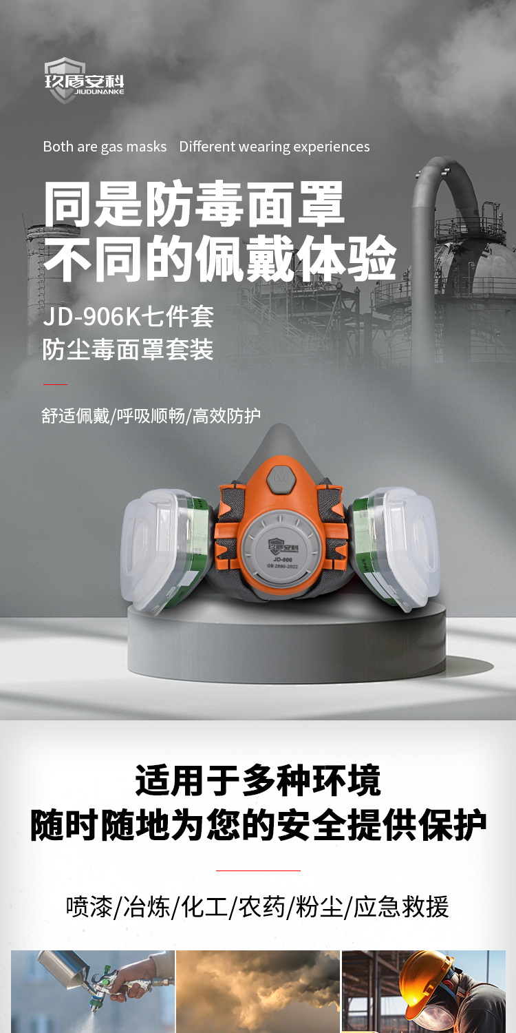 • 商品名称:JIUDUNANKE/玖盾安科 JD-906K 防毒面具防尘毒套装