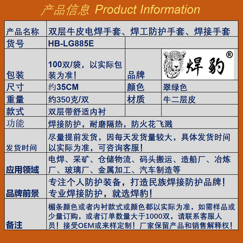 • 商品名称:焊豹 LG885E 湖蓝色牛皮双层电焊焊接手套 牛皮防护手套 35CM