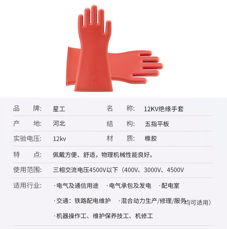 星工 XGKV-12KV橡胶绝缘手套-均码(直板)。