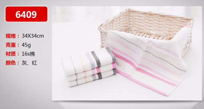 • 商品名称:洁丽雅 6409 纯棉强吸水舒适方巾34*34cm45g