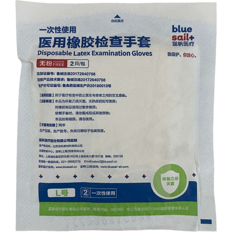 蓝帆医疗 一次性使用医用橡胶检查手套。