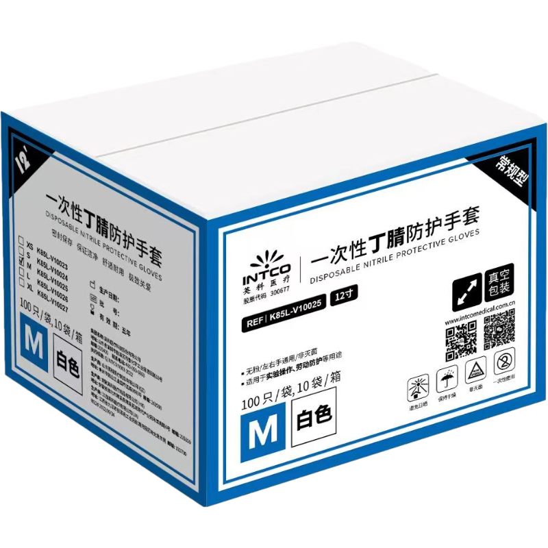 英科医疗 K85L-V10025一次性丁腈防护手套12寸抽真空 6.5g.