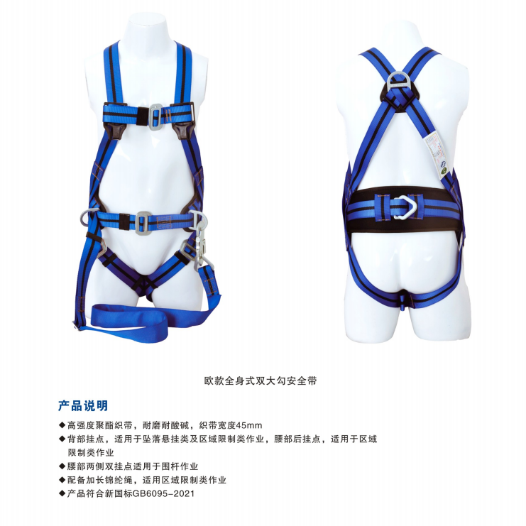 背部挂点,适用于坠落悬挂类及区域限制类作业,腰部后挂点,适用于区域限制类作业;