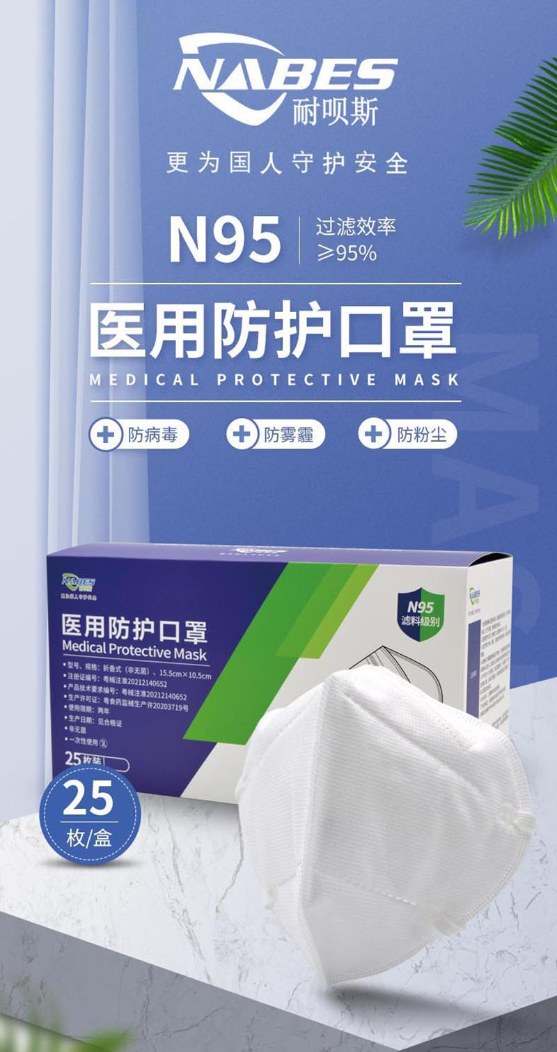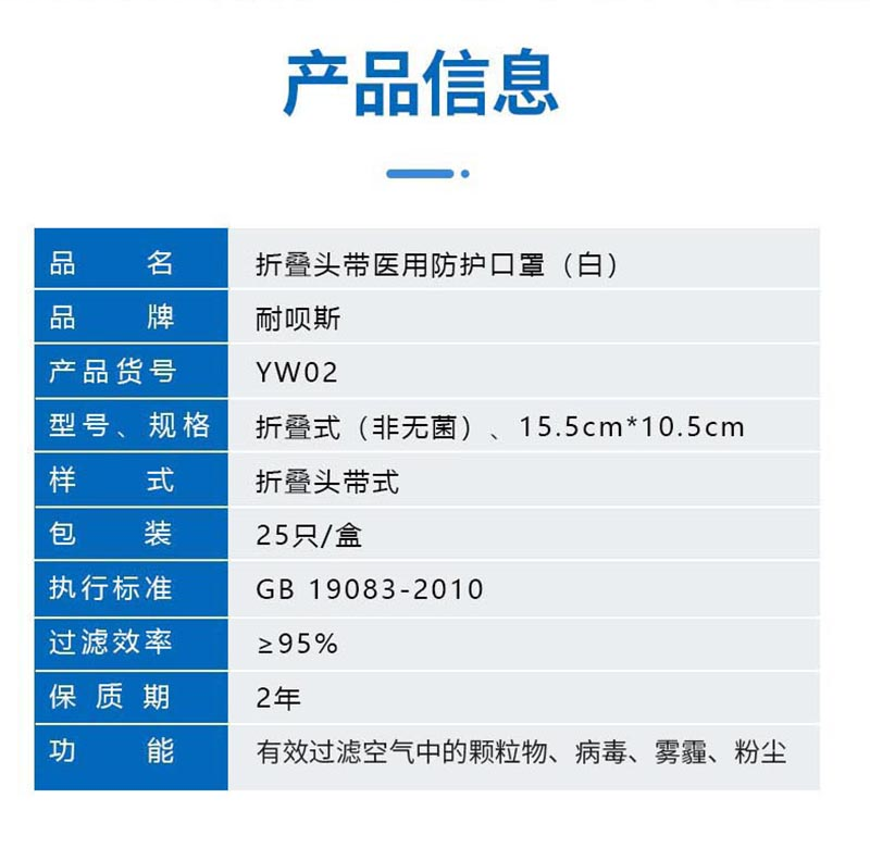 耐呗斯(NABES)YW02折叠头带医用防护口罩(白);