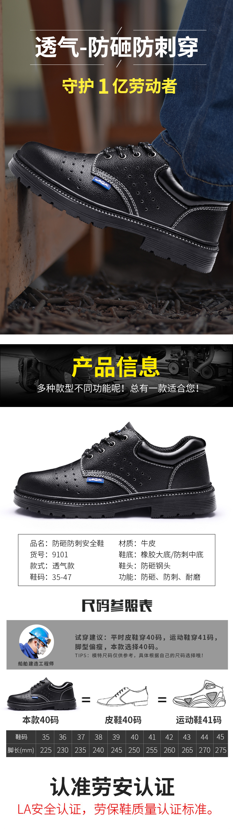 蓝鸥盾 9101 防砸防刺穿透气安全鞋;