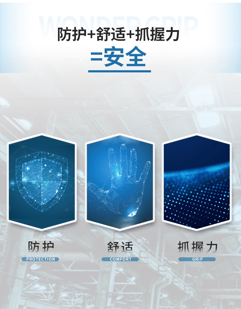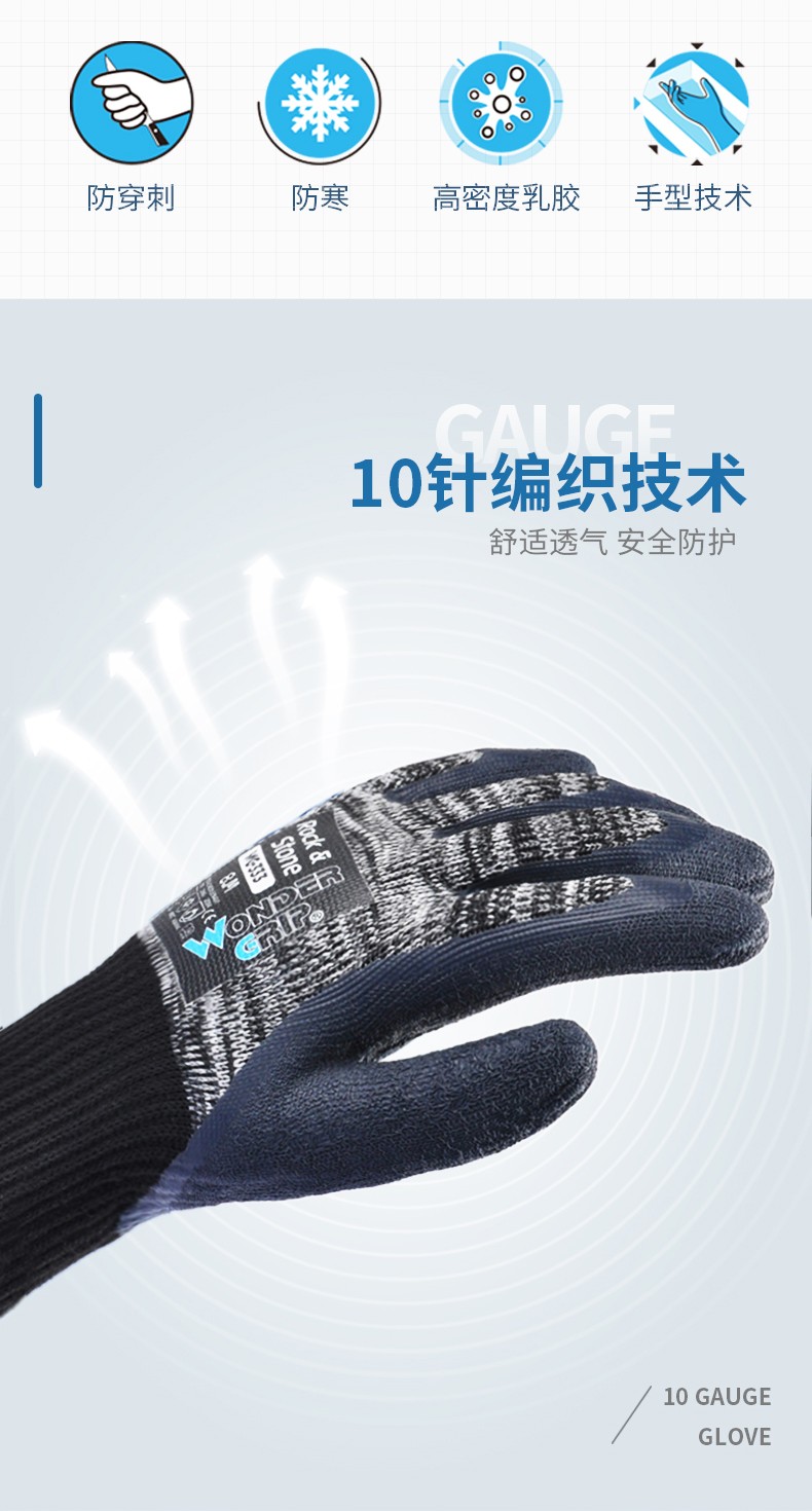 ●10针编织技术,舒适透气,安全防护;