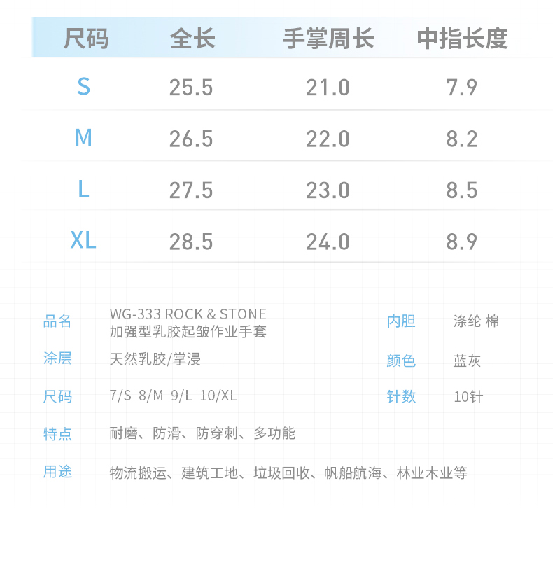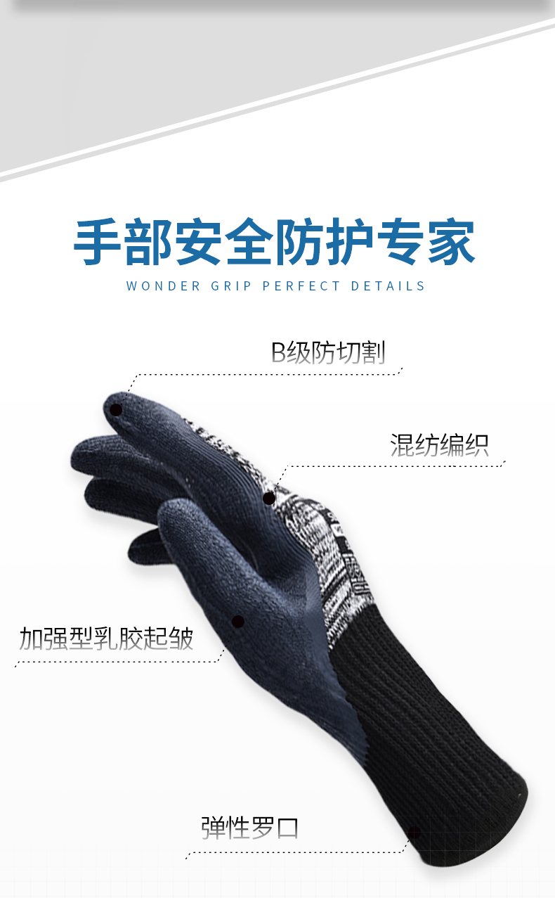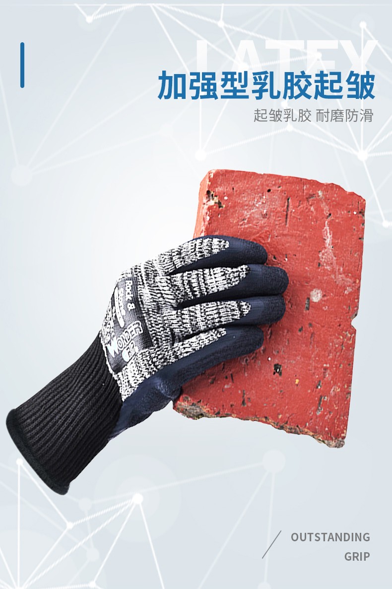 ●加强型乳胶起皱,耐磨防滑;