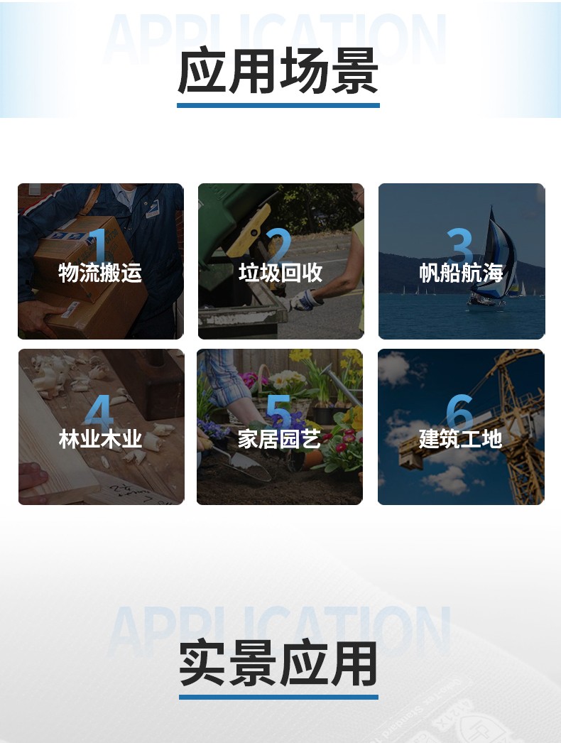 ●应用场景:物流搬运、垃圾回收、帆船航海、林业木业、家居园艺、建筑工地。
