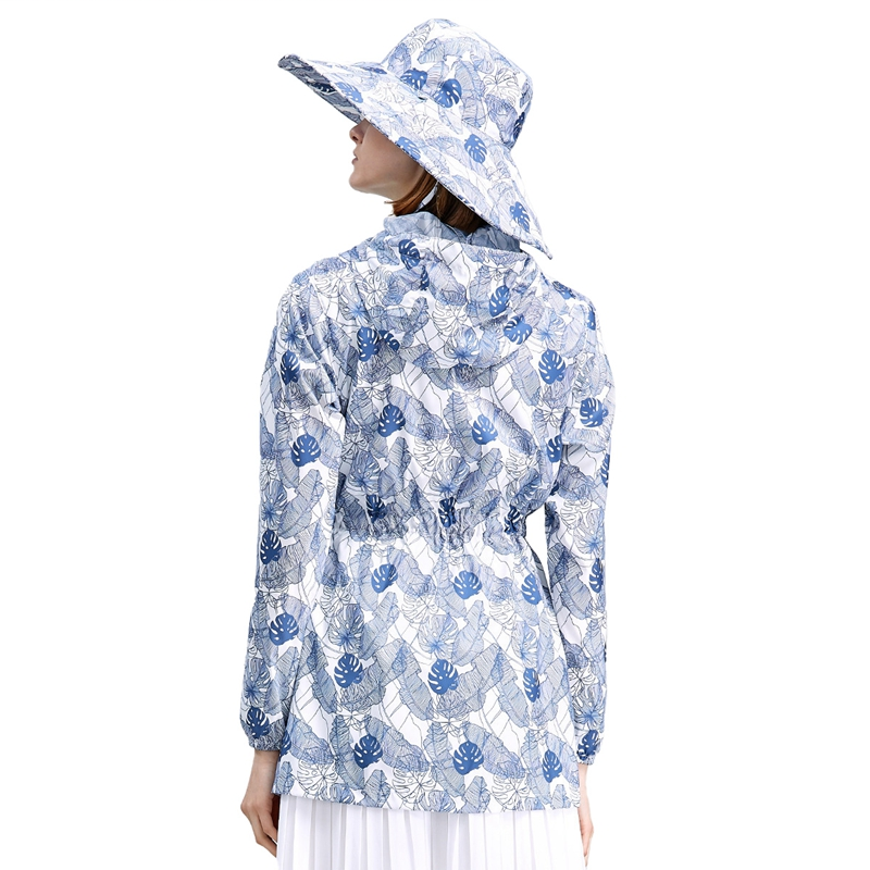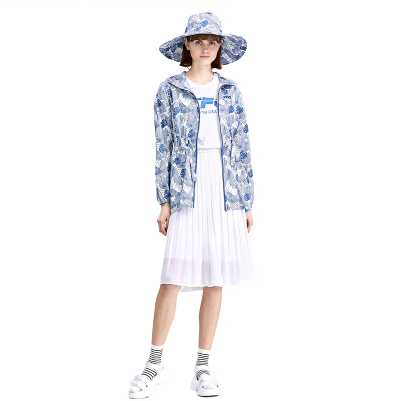 TFO 633085 中长款印花防晒皮肤风衣女款陶蓝。