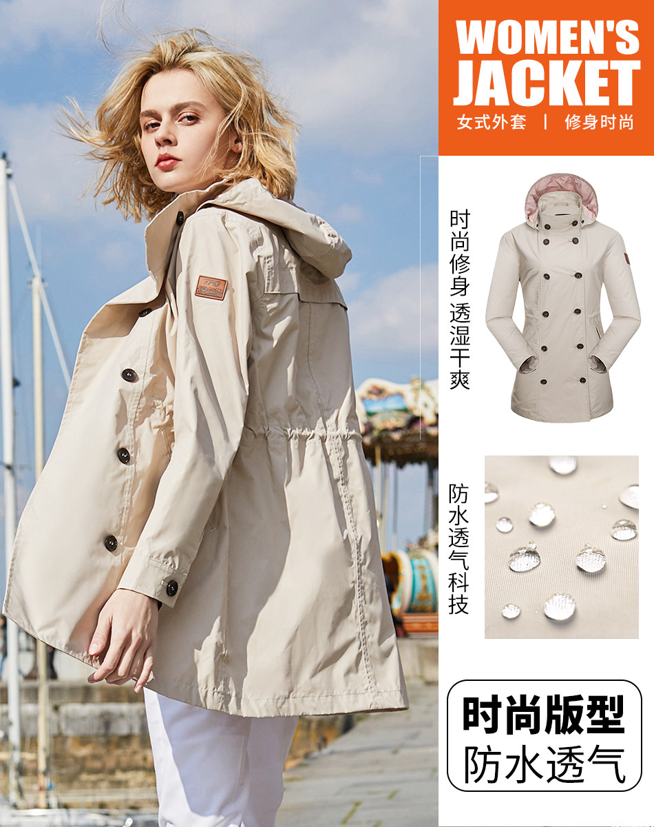 TFO 664955 单冲锋衣(防水透气)女款浅卡其。