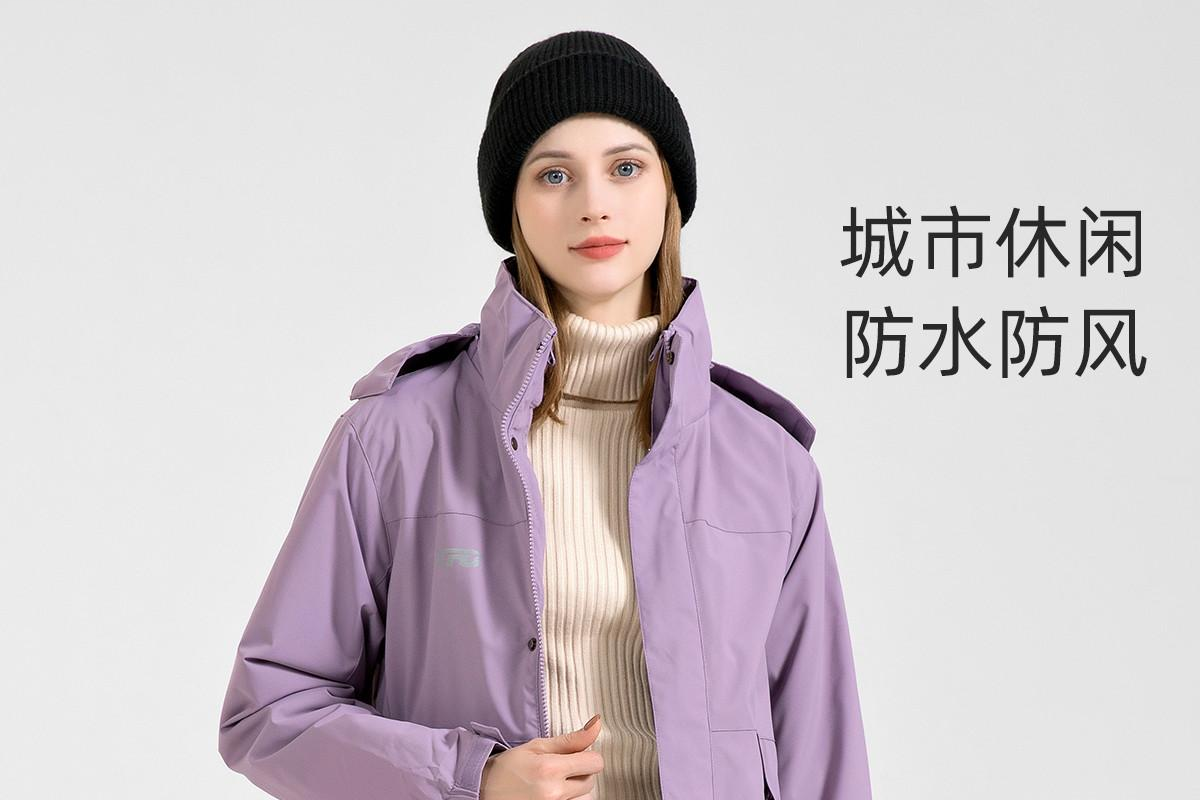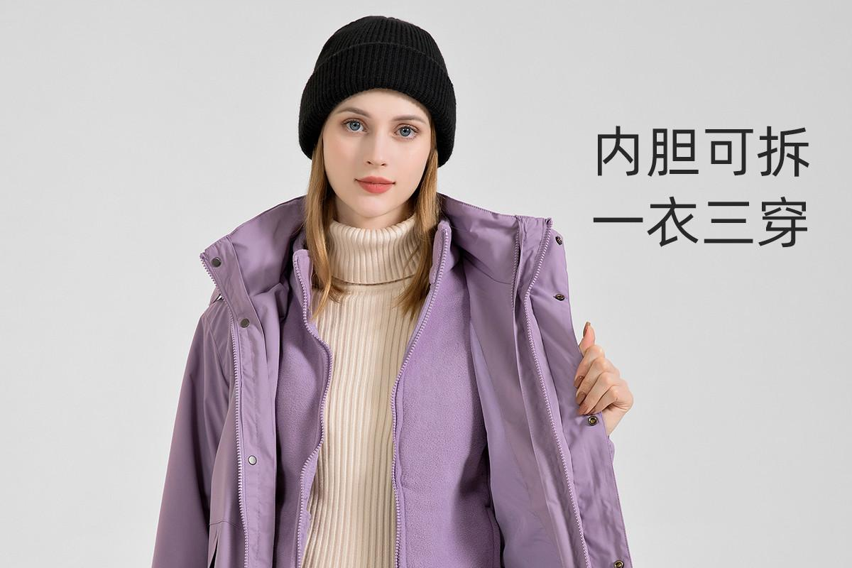 TFO 6642201 三合一休闲冲锋衣(抓绒内胆)女款粉紫。