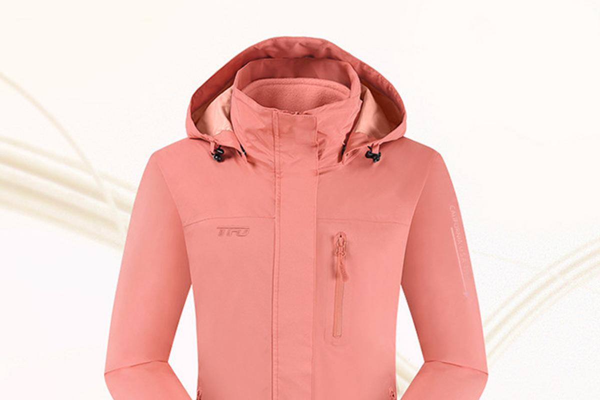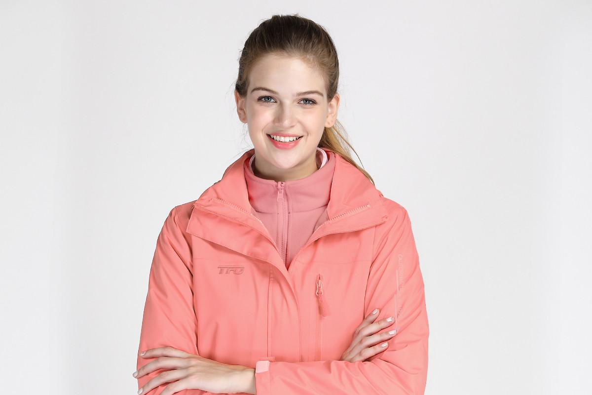 TFO 664061 三合一冲锋衣/抓绒衫内件防水透气女款樱灰粉。