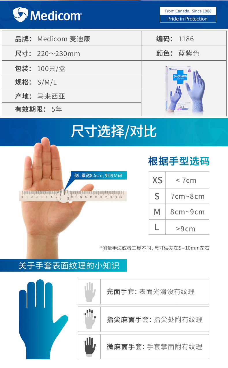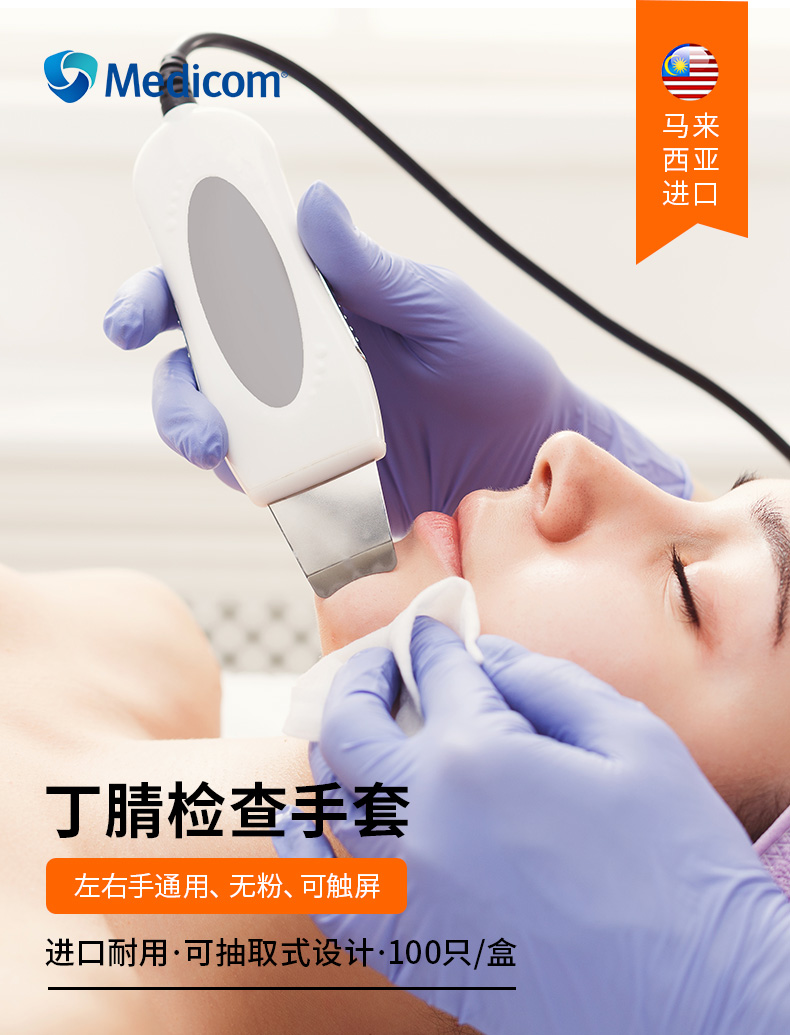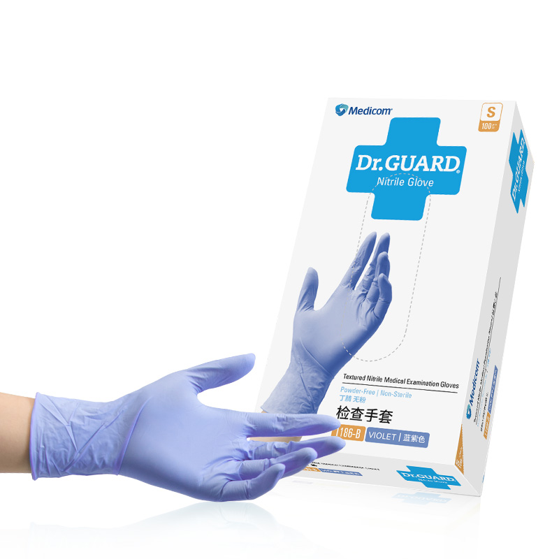 麦迪康 1186 轻柔型医疗级丁腈手套无粉 蓝紫色(3.5g)。