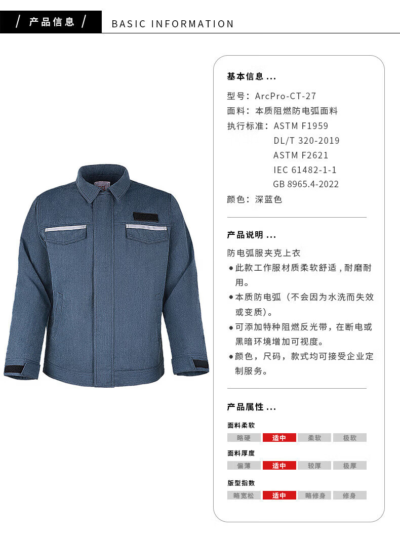 • 商品名称:诚格 ArcPro-CT-27 防电弧夹克 27cal