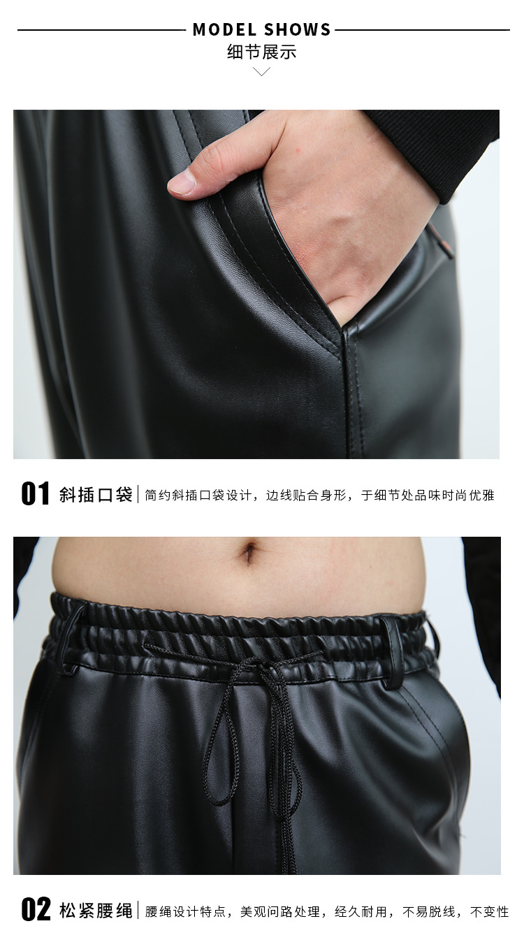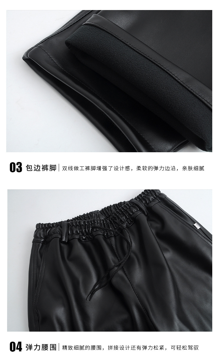 拓玛森 棉款护腰护膝款松紧腰皮裤 黑色。