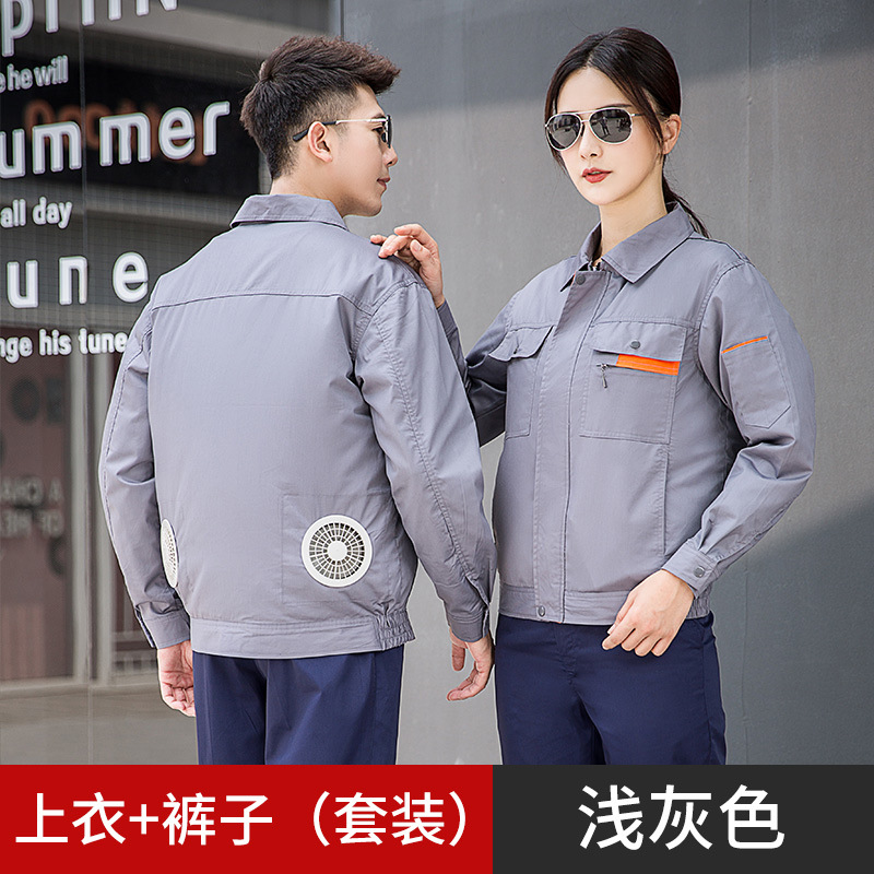 通众 夏季长短袖空调服配件带风扇工作上衣 浅灰色。