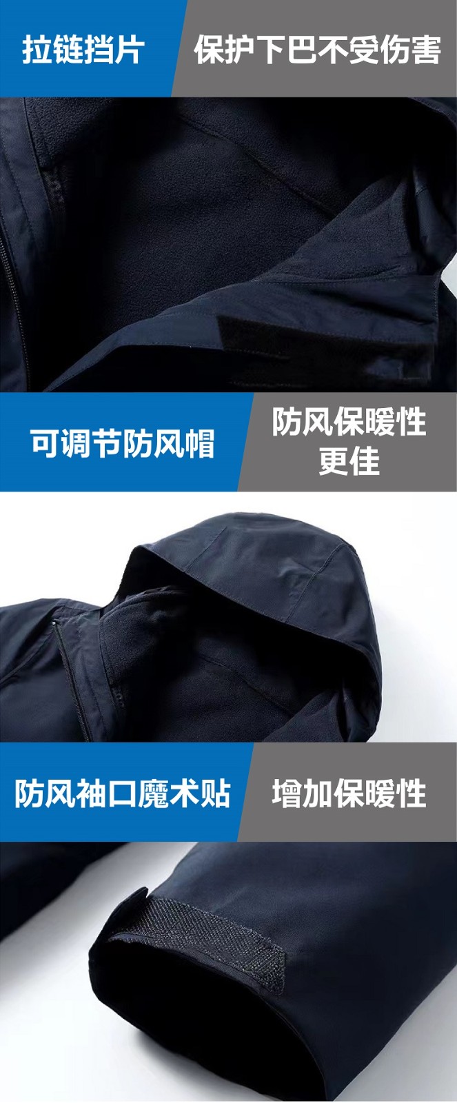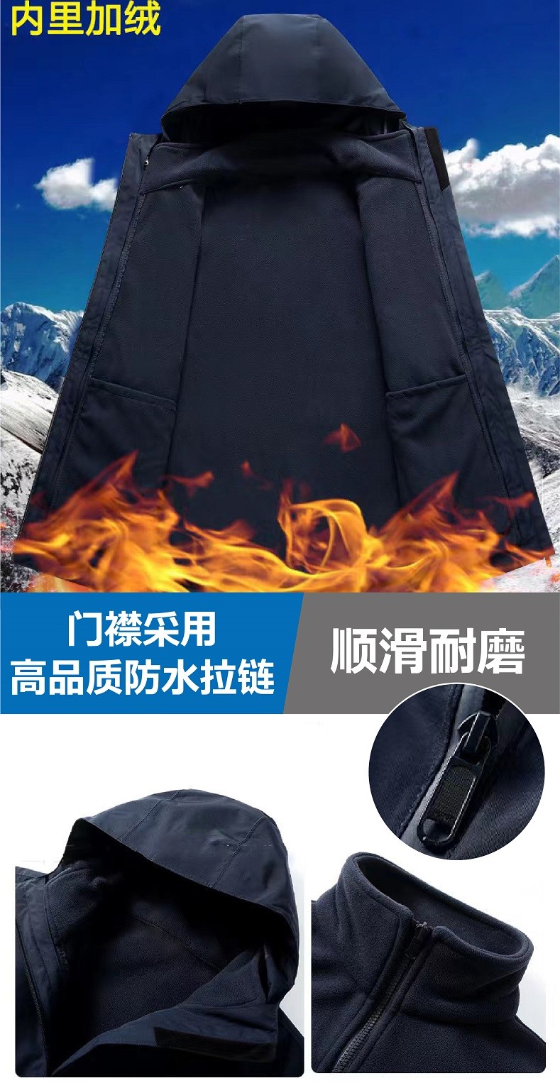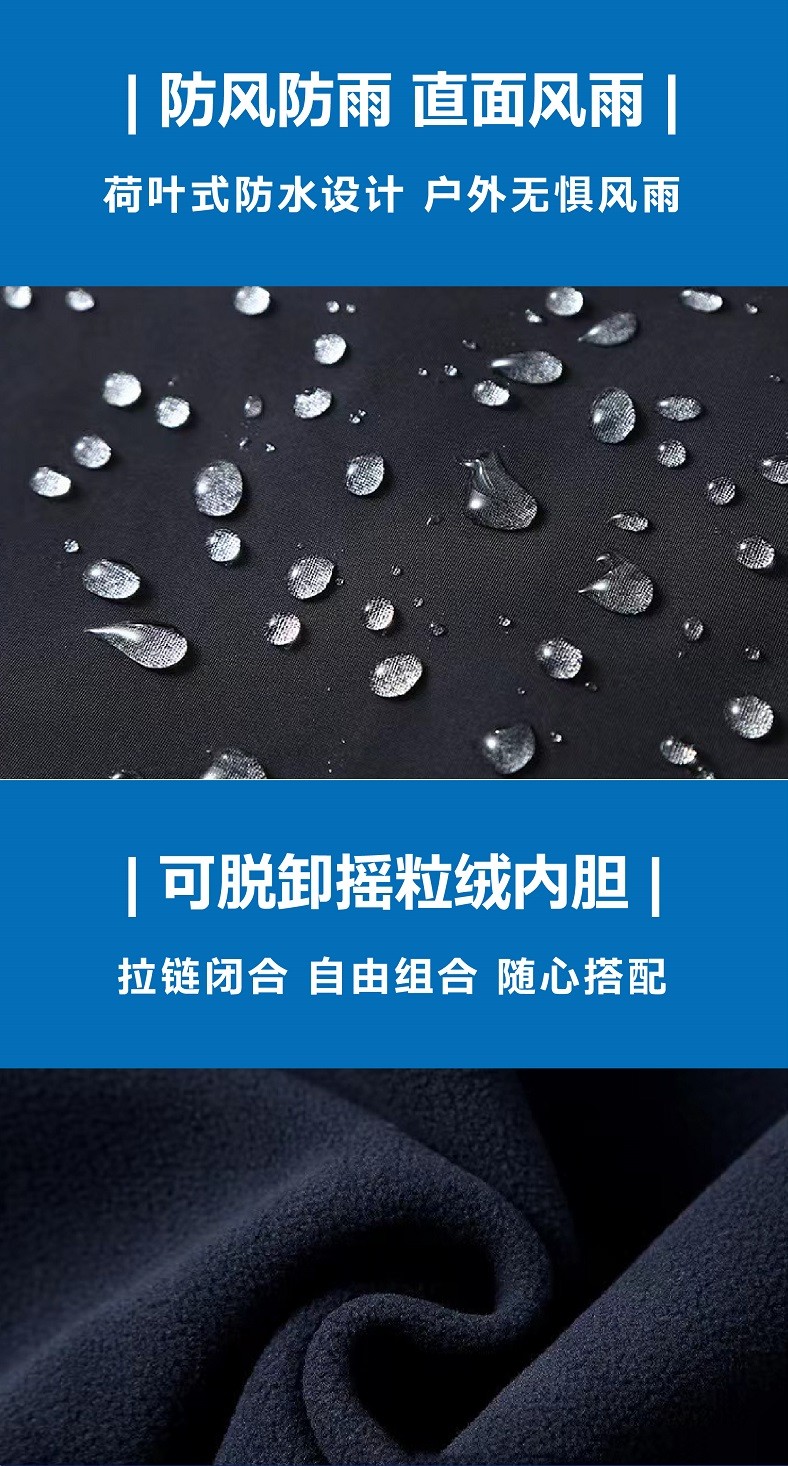 可脱卸摇粒绒内胆拉链闭合,自由组合,随心搭配;