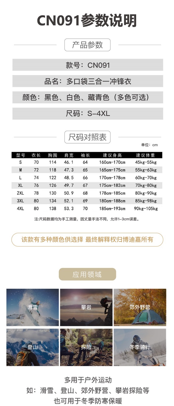 CN091 多口袋三合一冲锋衣(摇粒绒内胆);