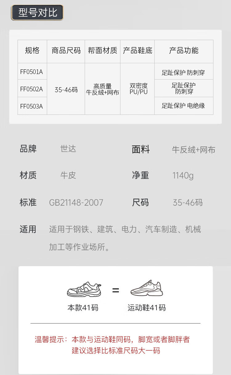 • 商品名称:世达 FF0502A 防砸防刺防静电 休闲款多功能安全鞋
