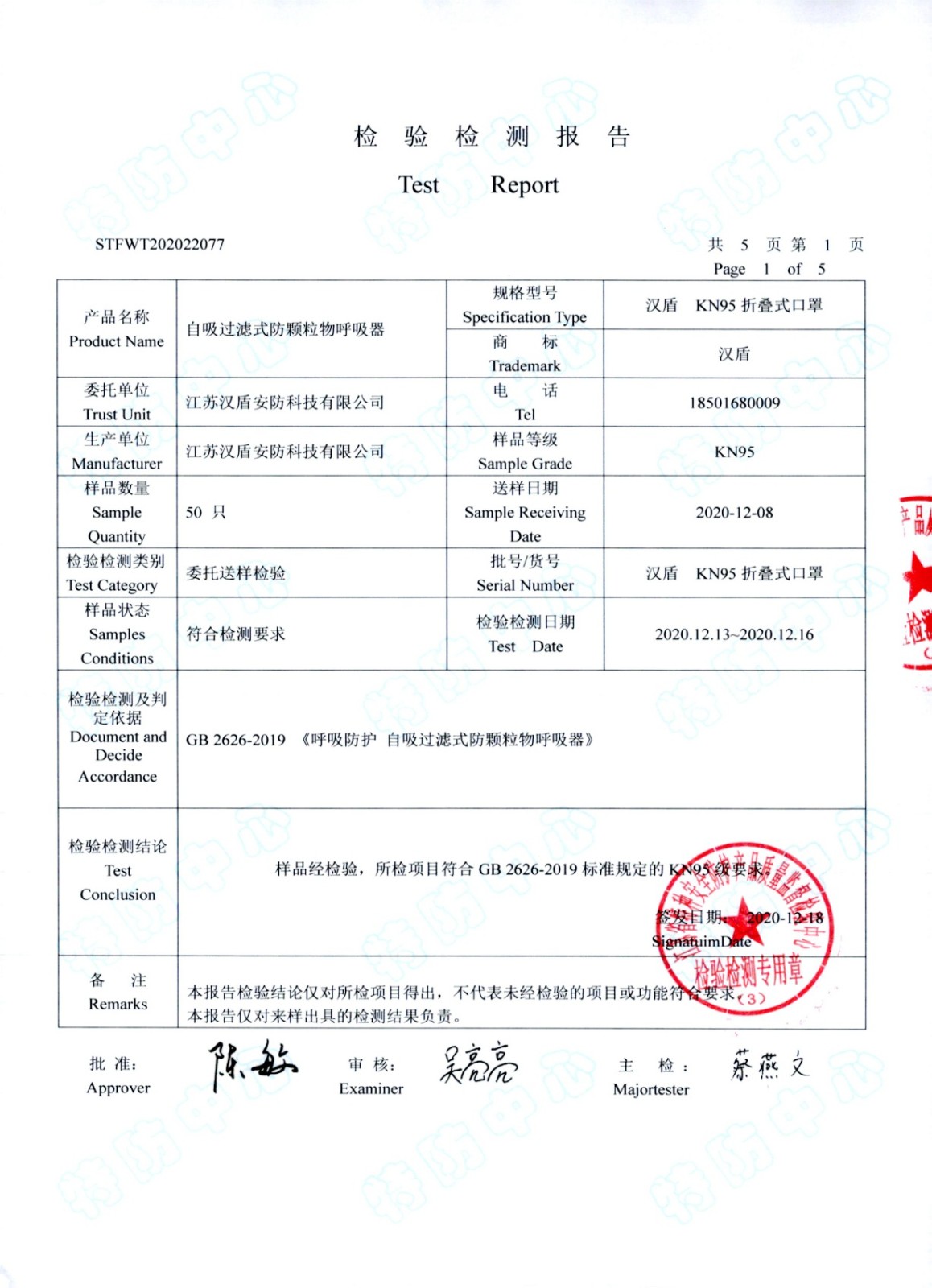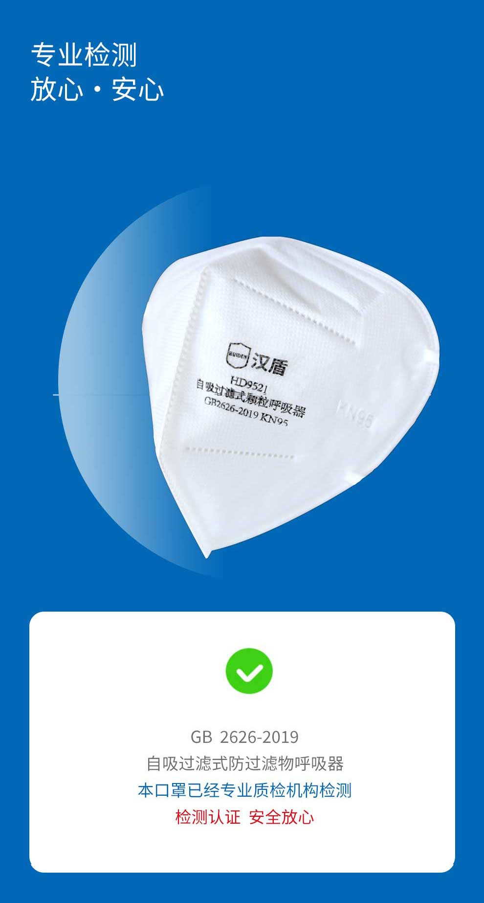 汉盾 HD9521 KN95折叠式口罩经济型(耳带式不带阀环保装不带海绵垫) 。
