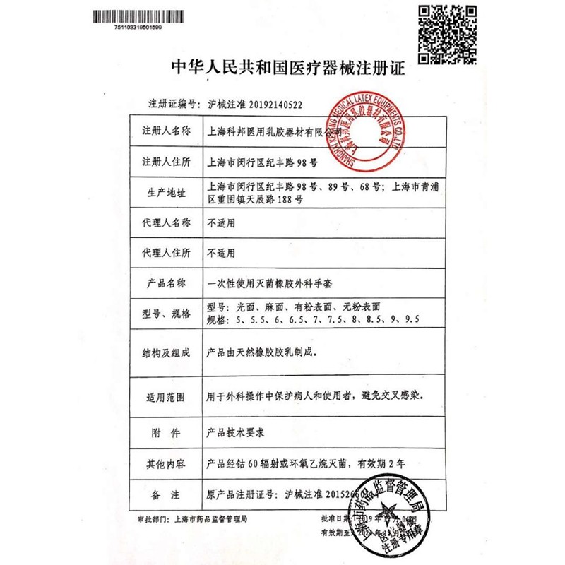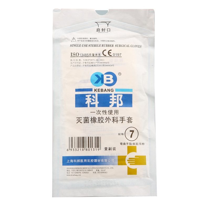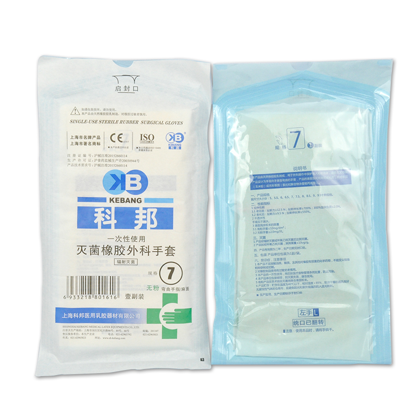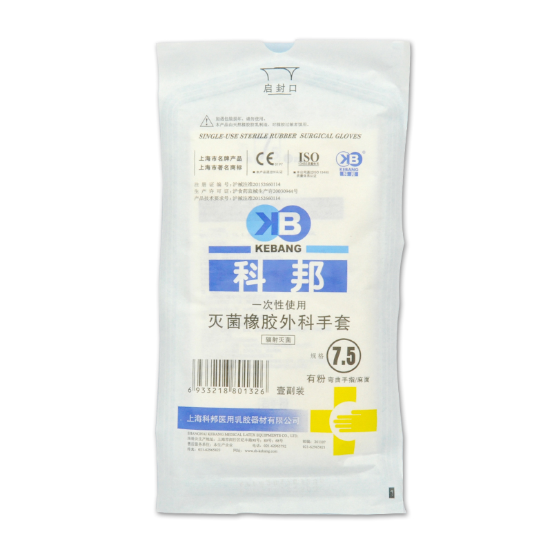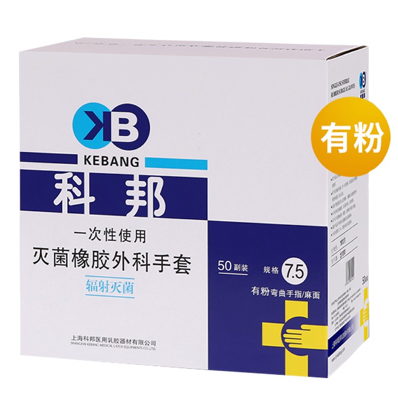 科邦 一次性使用灭菌橡胶外科手套有粉 (独立包装)。