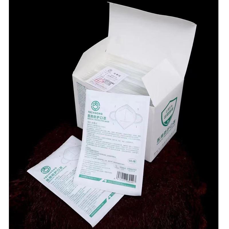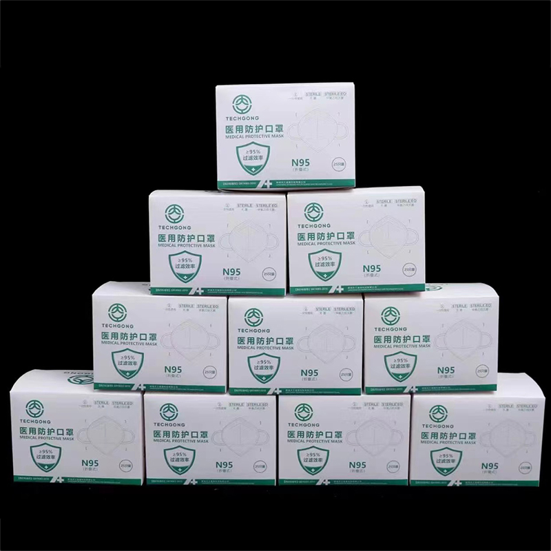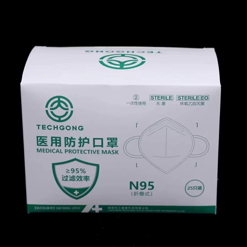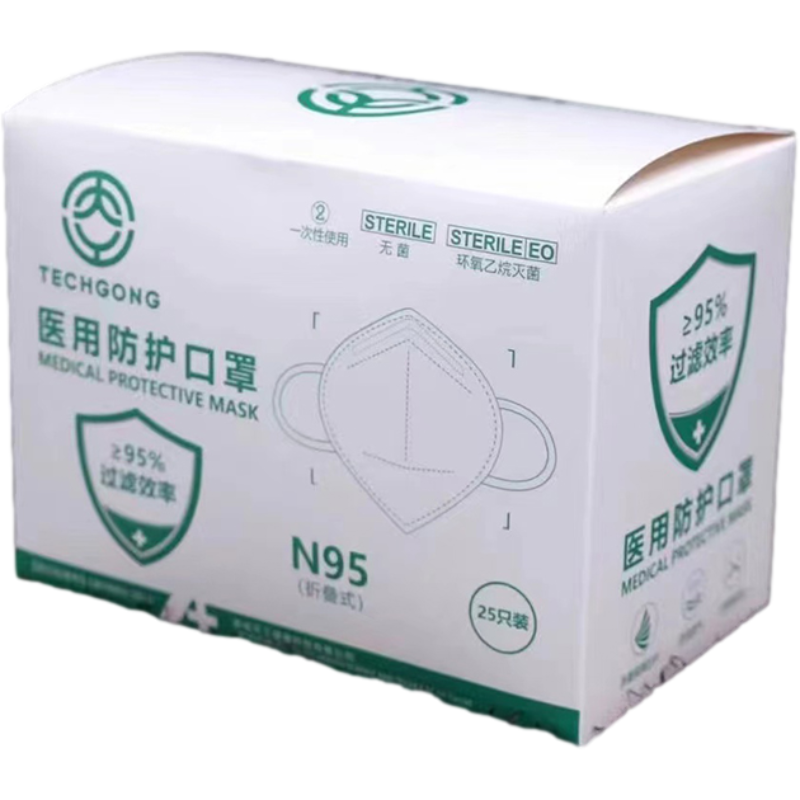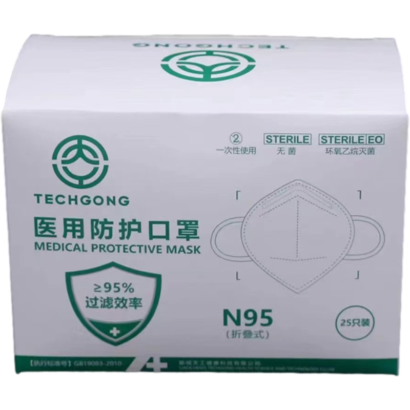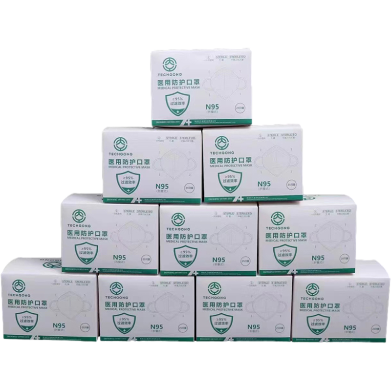 天工 N95医用防护口罩 白色 耳戴式(含挂钩)。