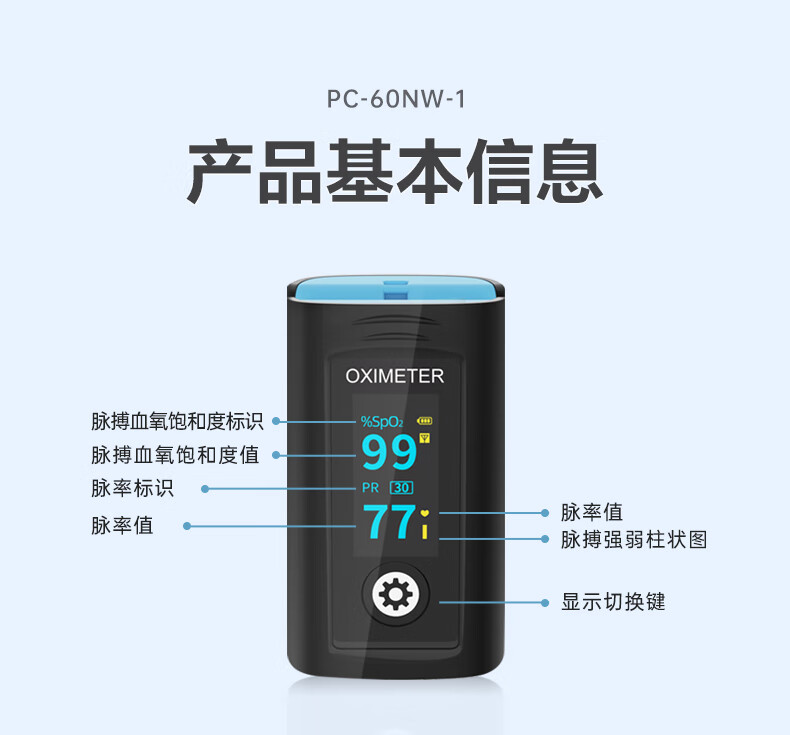 乐普 PC-60NW-1 血氧仪指夹式血氧饱和度检测仪脉率血氧检测仪;