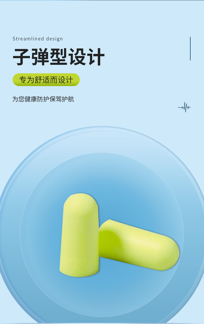 子弹型设计耳塞便于揉搓和佩戴,并在耳道内膨胀,实现舒适的、良好的密合;