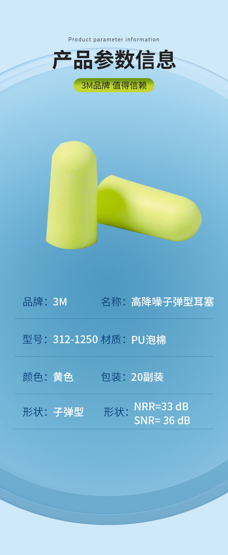 3M™ E-A-Rsoft™ Yellow Neons 高降噪子弹型耳塞采用柔软、慢回弹泡棉,实现高降噪,提供可靠的听力保护;