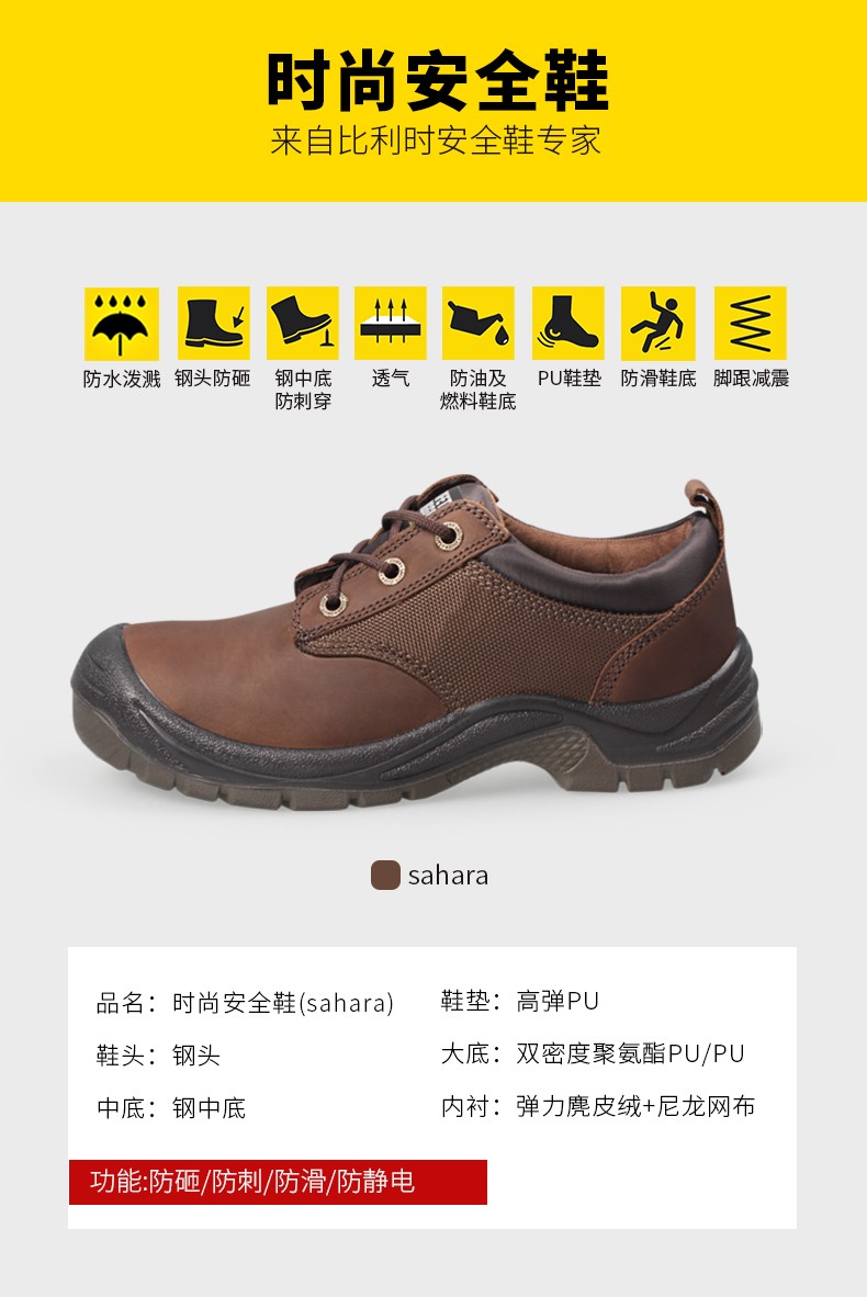 钢制防砸包头保护足趾,钢中底防刺穿;