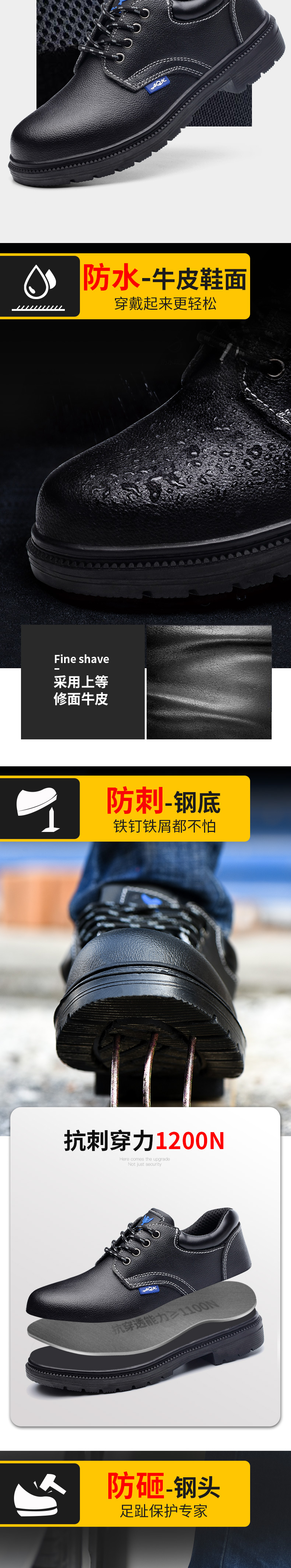 钢头钢底,防砸防刺穿;