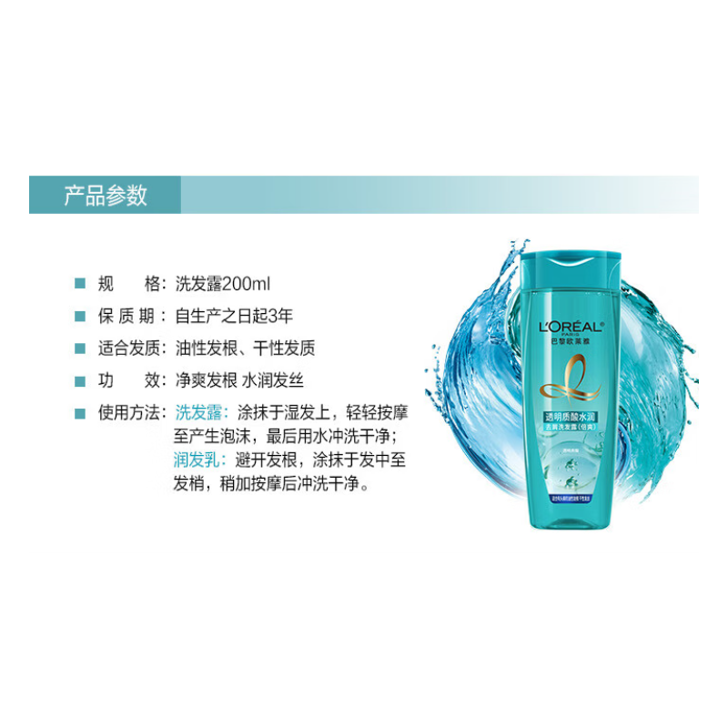 欧莱雅 透明质酸水润 去屑洗发水