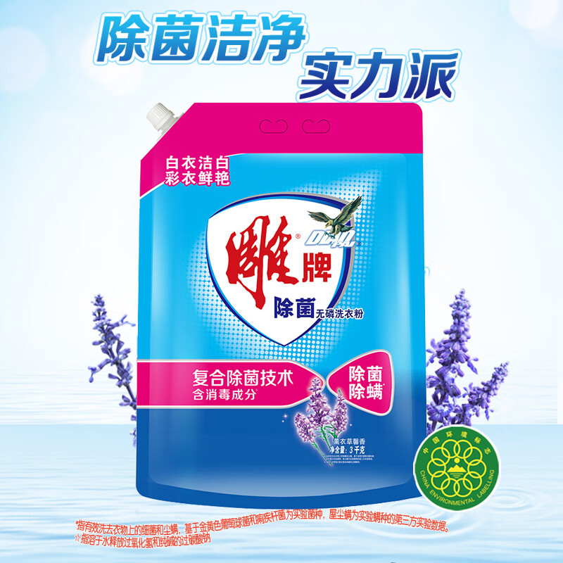 雕牌6910019013479 除菌除螨无磷 洗衣粉 3kg