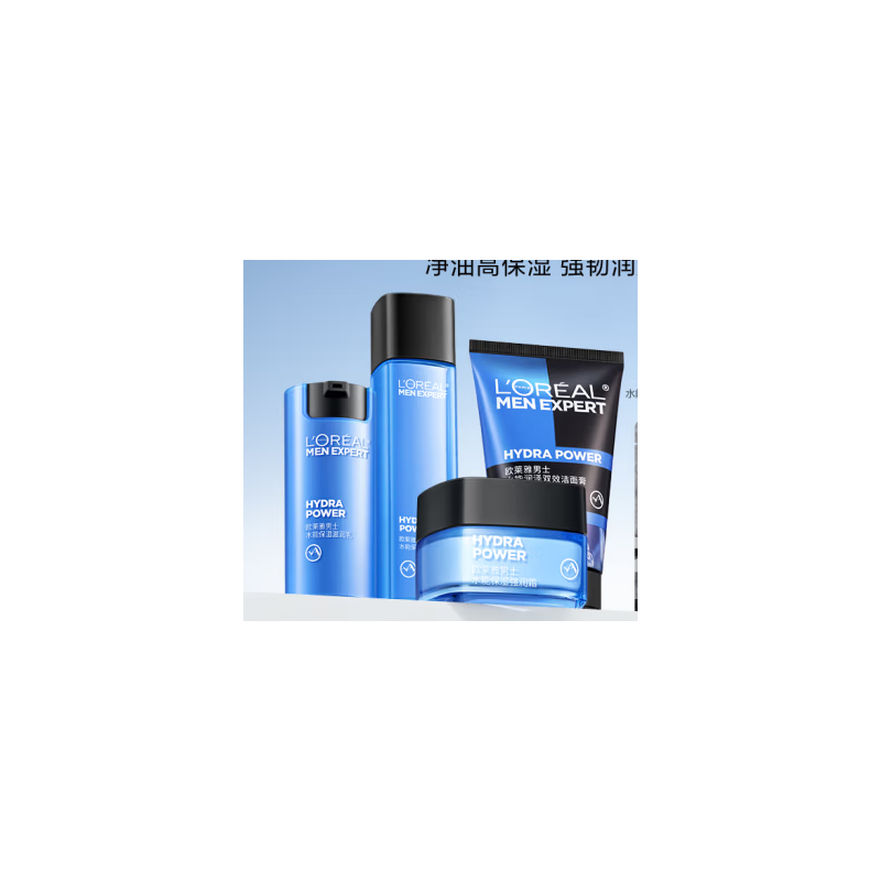 欧莱雅 男士补水 保湿洗面奶水乳面霜套装护肤品玻尿酸