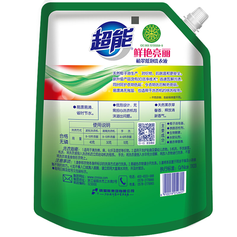 超能 洁净柔护洗衣液(鲜艳亮丽)(带出液口D)