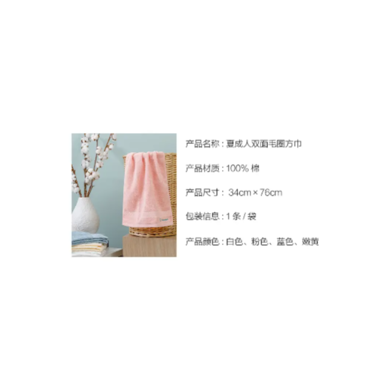 全棉时代 100%精梳长绒棉纱34*76 成人双面毛圈面巾