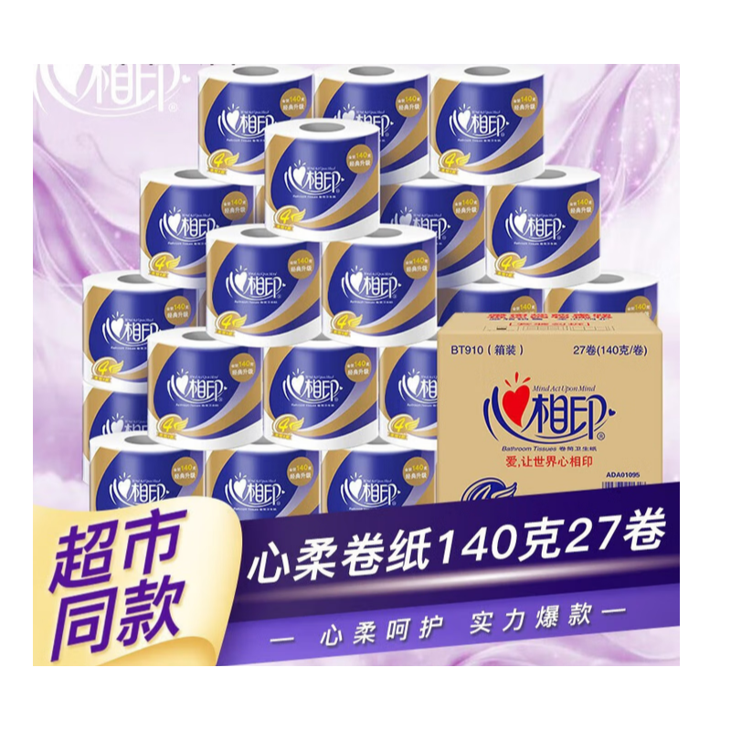 心相印 BT910DSZ 卷纸卷筒心柔系列卫生纸140g*27卷