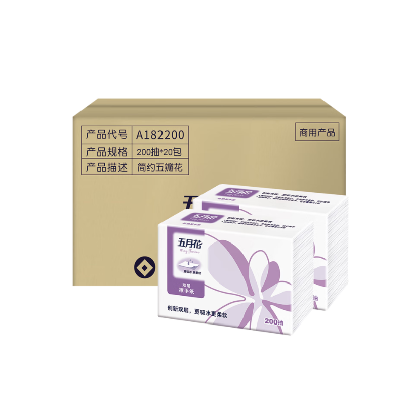 五月花 A182200 简约五瓣花抽纸200抽/包