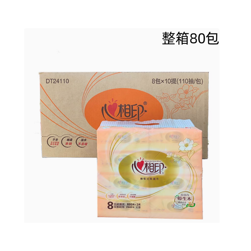 心相印 DT24110 经典抽纸3层110抽餐巾纸亲肤面巾纸8包/提