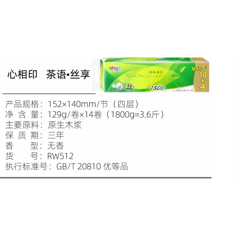 心相印 RW512 茶语丝享长卷纸152mm*140mm(四层)14卷/提