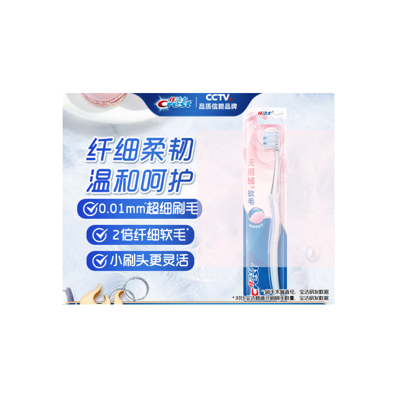 佳洁士 护龈小宽头超细软毛 天鹅绒牙刷成人两