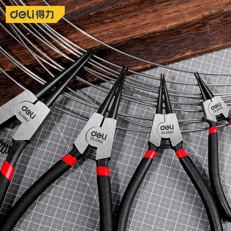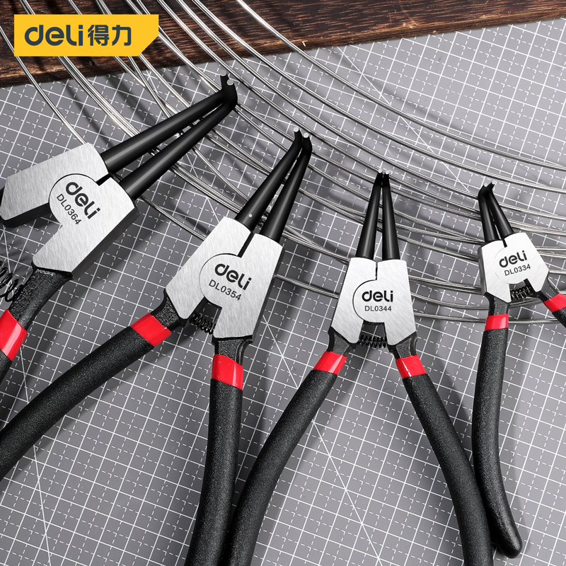得力工具 日式卡簧钳四件套铬钒钢(红)
