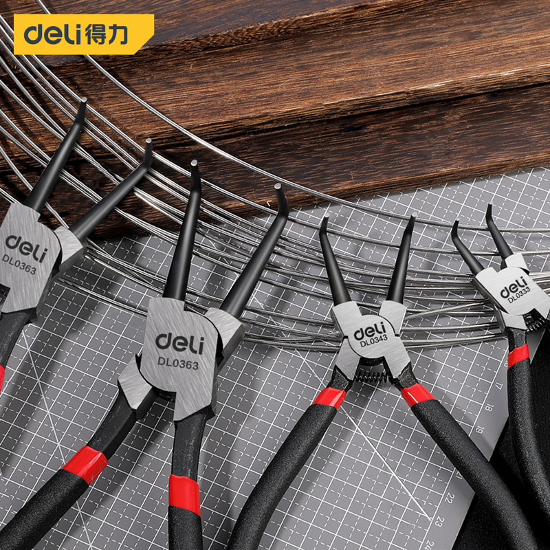 得力工具 日式外直卡簧钳铬钒钢(红)