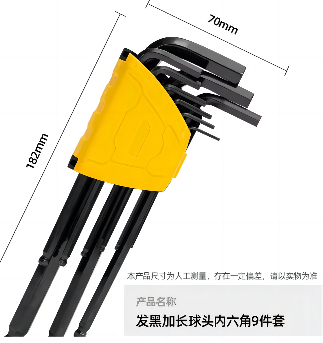 得力工具 DL232209H 发黑加长球头内六角组套9件套(黑)(套)