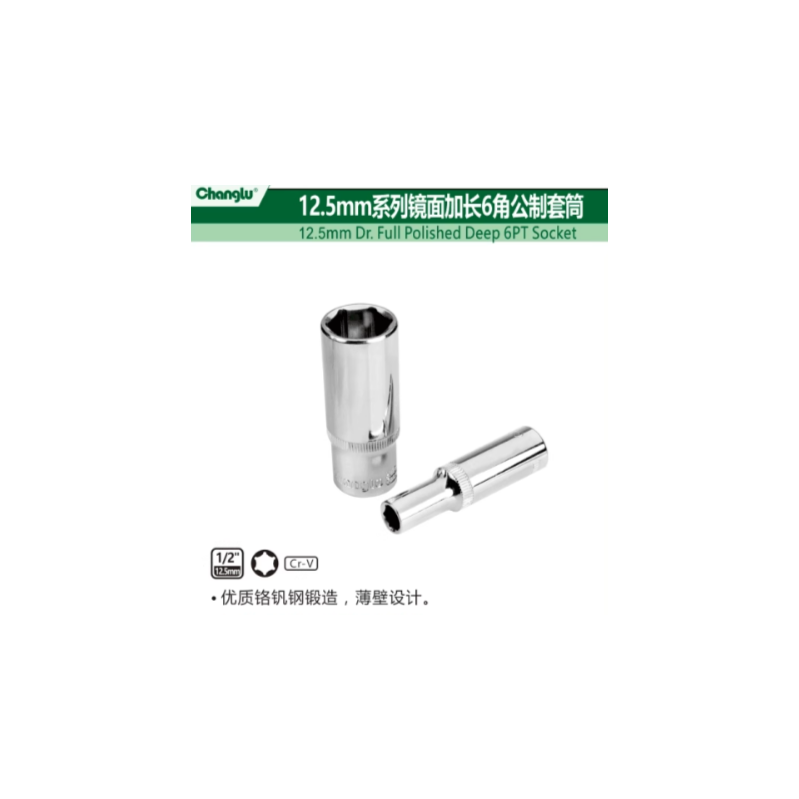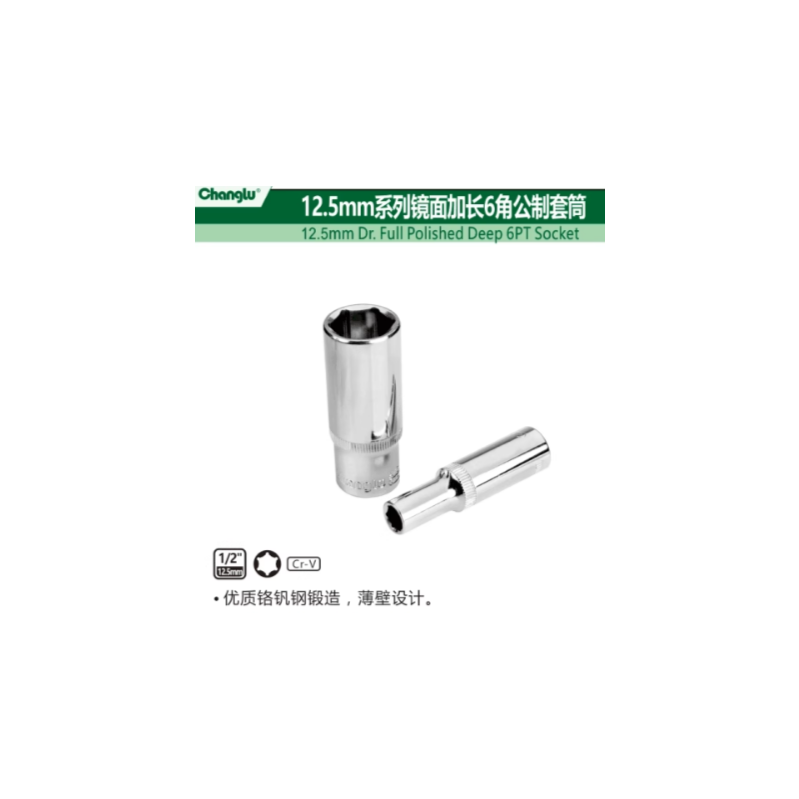 长鹿工具 205412 12.5mm系列镜面齿形公制套筒(Cr-V)12mm