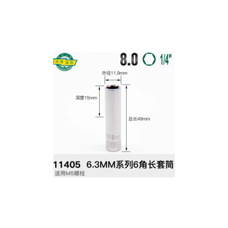 世达工具 11405 6.3MM系列六角长套筒8MM