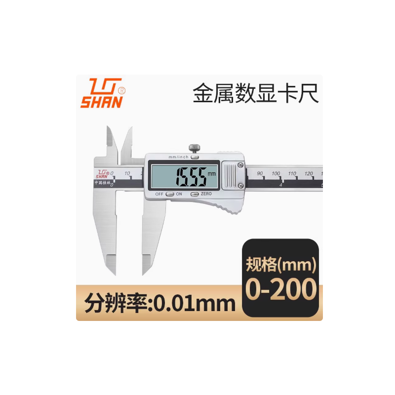 桂量 子数显卡尺不锈钢游标卡尺 金属壳0-200mm